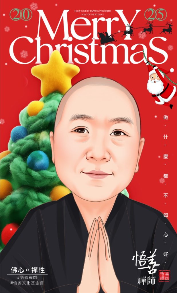2025聖誕節快樂 2025 年 12 月 22 日 作者: 站長 2025/12/25聖誕節 祝各位大德聖誕節快樂。 悟善禪師就像是聖誕老公公,因為禪師總是給予眾生滿滿的關懷、教誨與禮物,期許我們能有所成長、找回初心並成為他人的助力。 歡迎各位大德至道場禮佛!